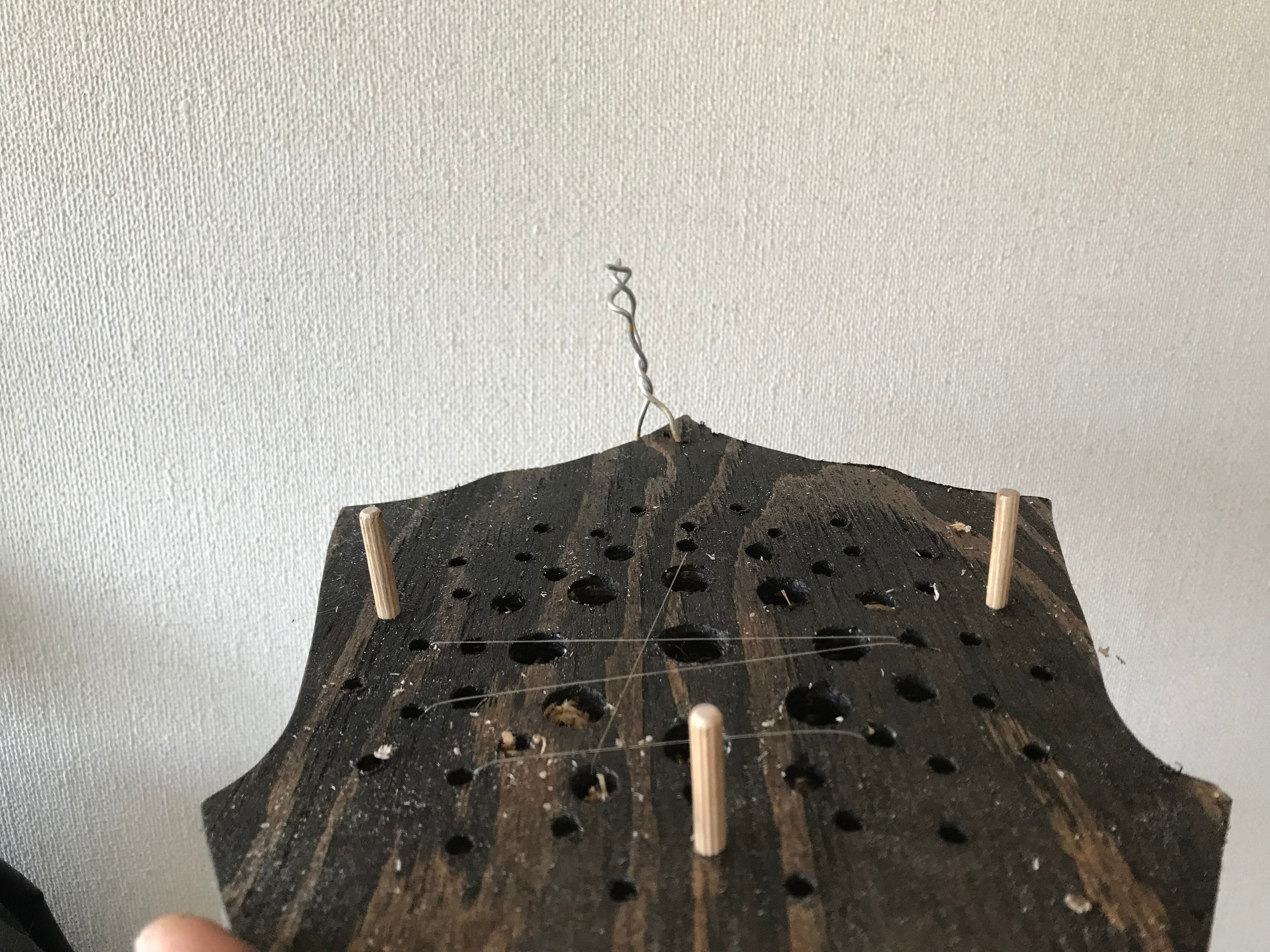 セット内容は板付け用の板、縫い付け用の釣り糸3号を約6メートルと縫い付け用のピン、吊り用のアルミ針金、通気用のピン(ダボ)3本となっております。